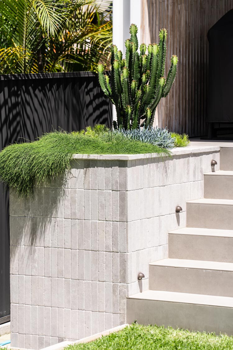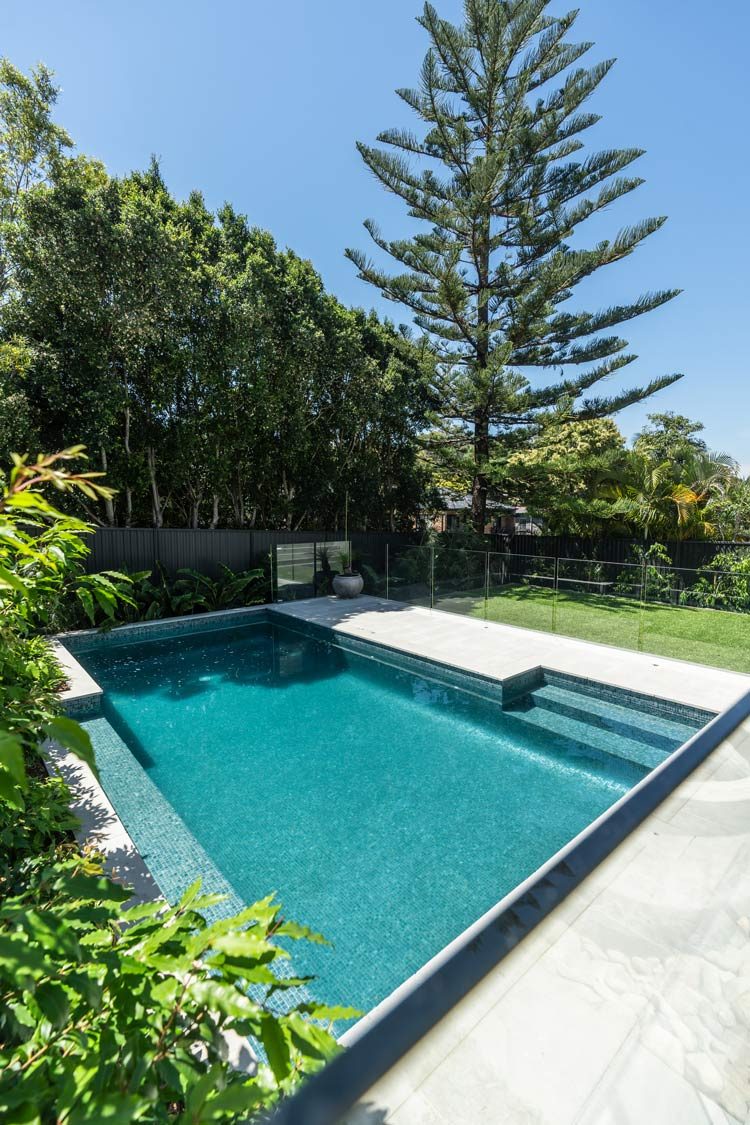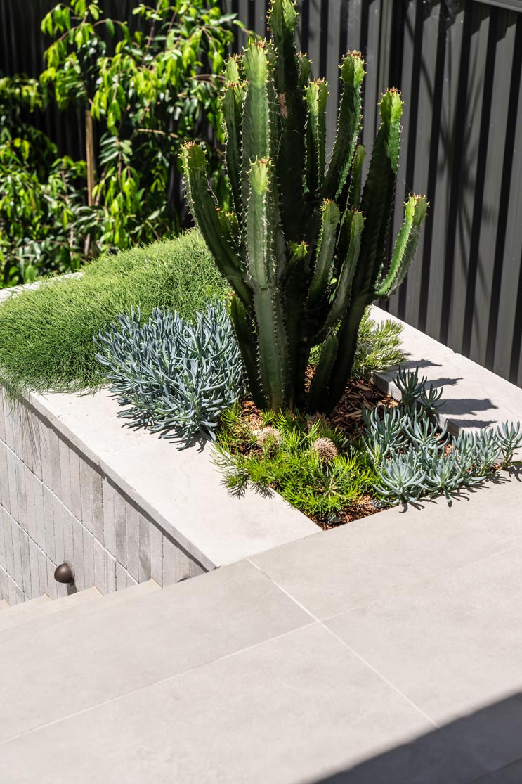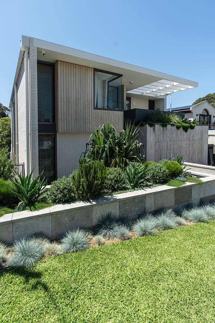 Modern tropical sophistication meets feature natives. A contemporary, mostly native plant palette in layered greens and silvers, punctuated by subtle colour and exotic accents — perfectly complementing the architecture by Smyth & Smyth and meeting our clients brief.