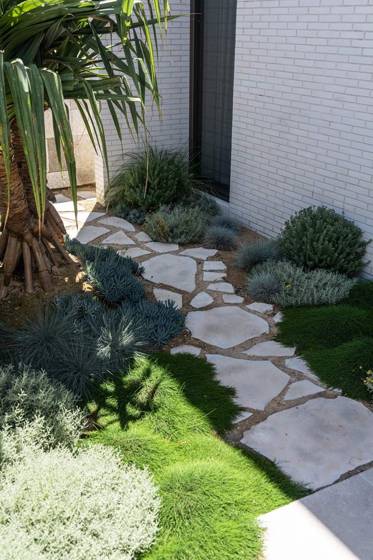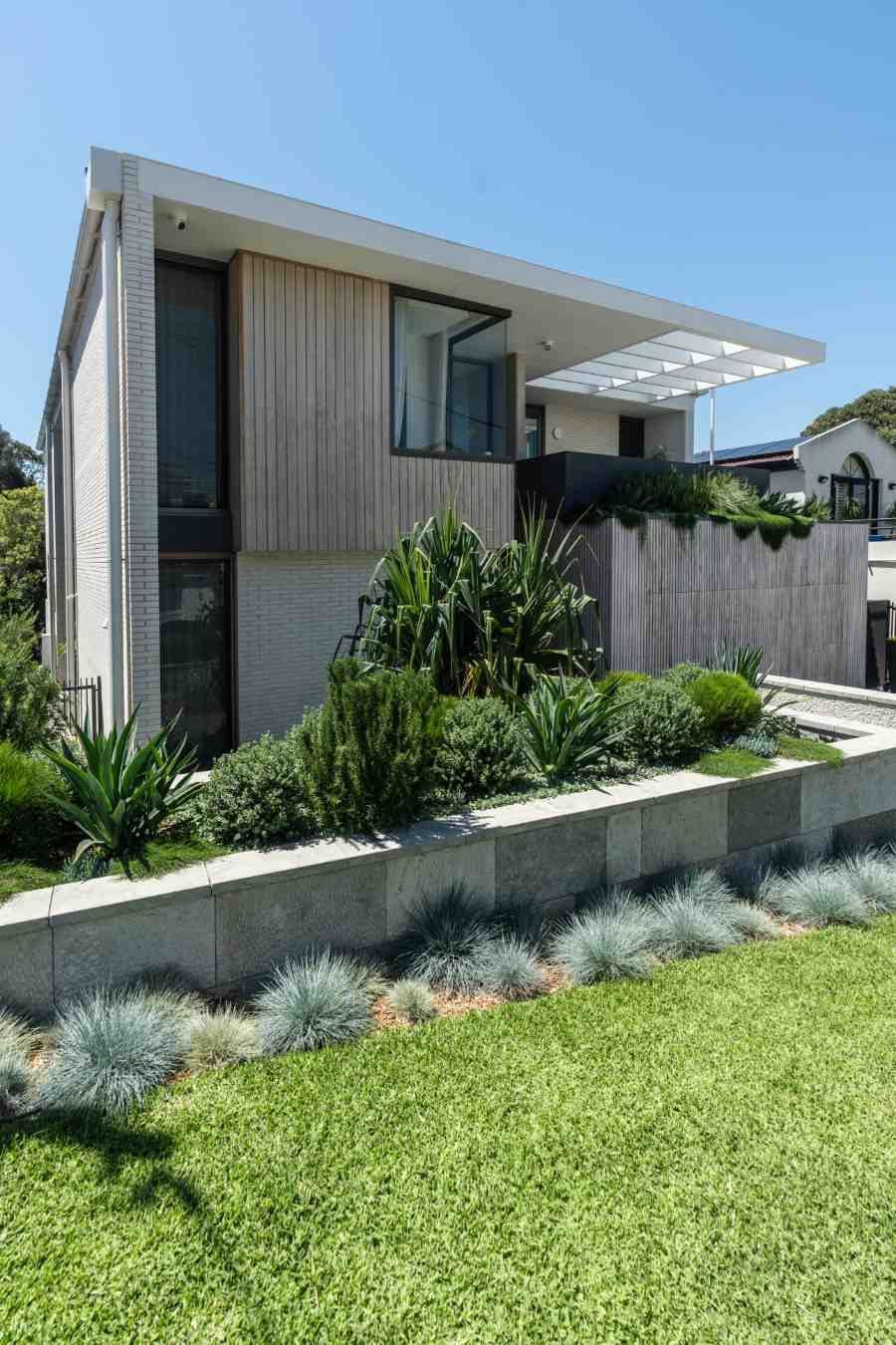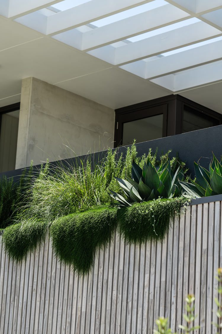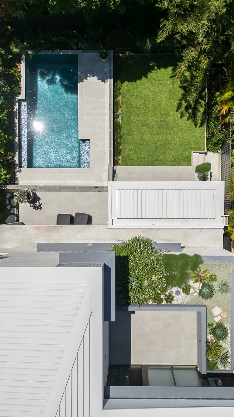 Modern tropical sophistication meets feature natives. A contemporary, mostly native plant palette in layered greens and silvers, punctuated by subtle colour and exotic accents — perfectly complementing the architecture by Smyth & Smyth and meeting our clients brief.