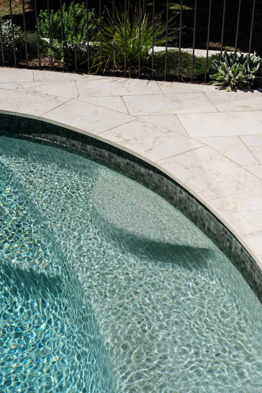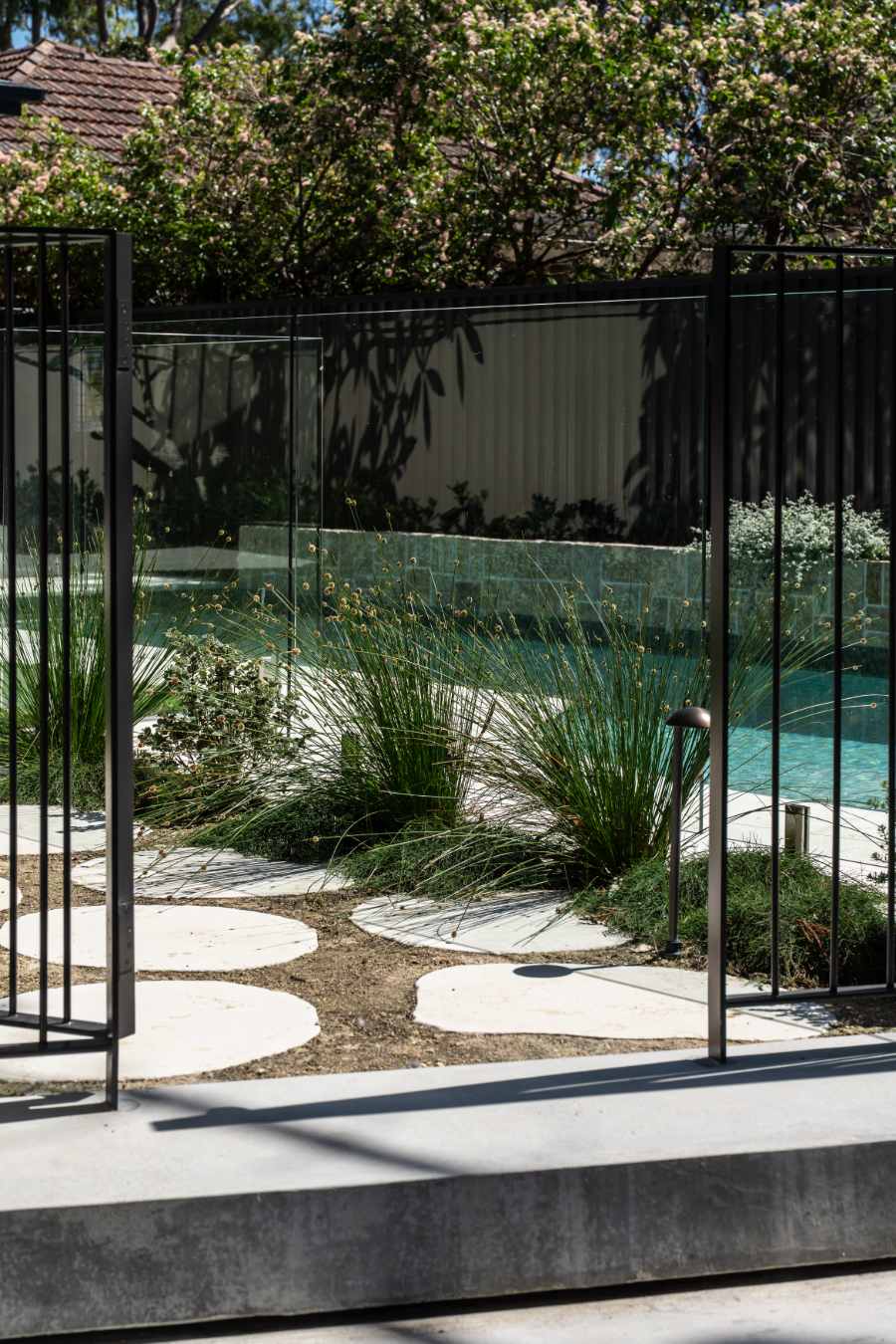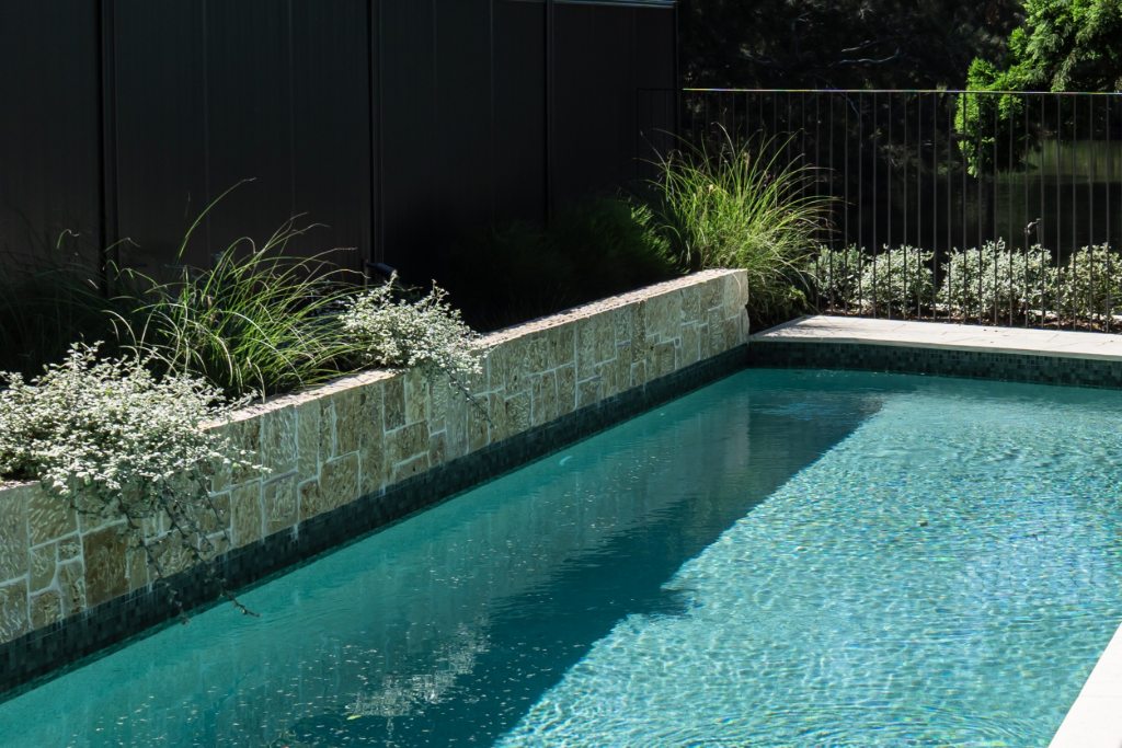 A contemporary Australian coastal garden designed to connect visually with Manly Lagoon. The renovated pool zone is modernised with new paving, mosaic tiling, pool interior and stone wall cladding. A discreet pool fence dissolves the boundary between public and private space, maximising views while retaining privacy.